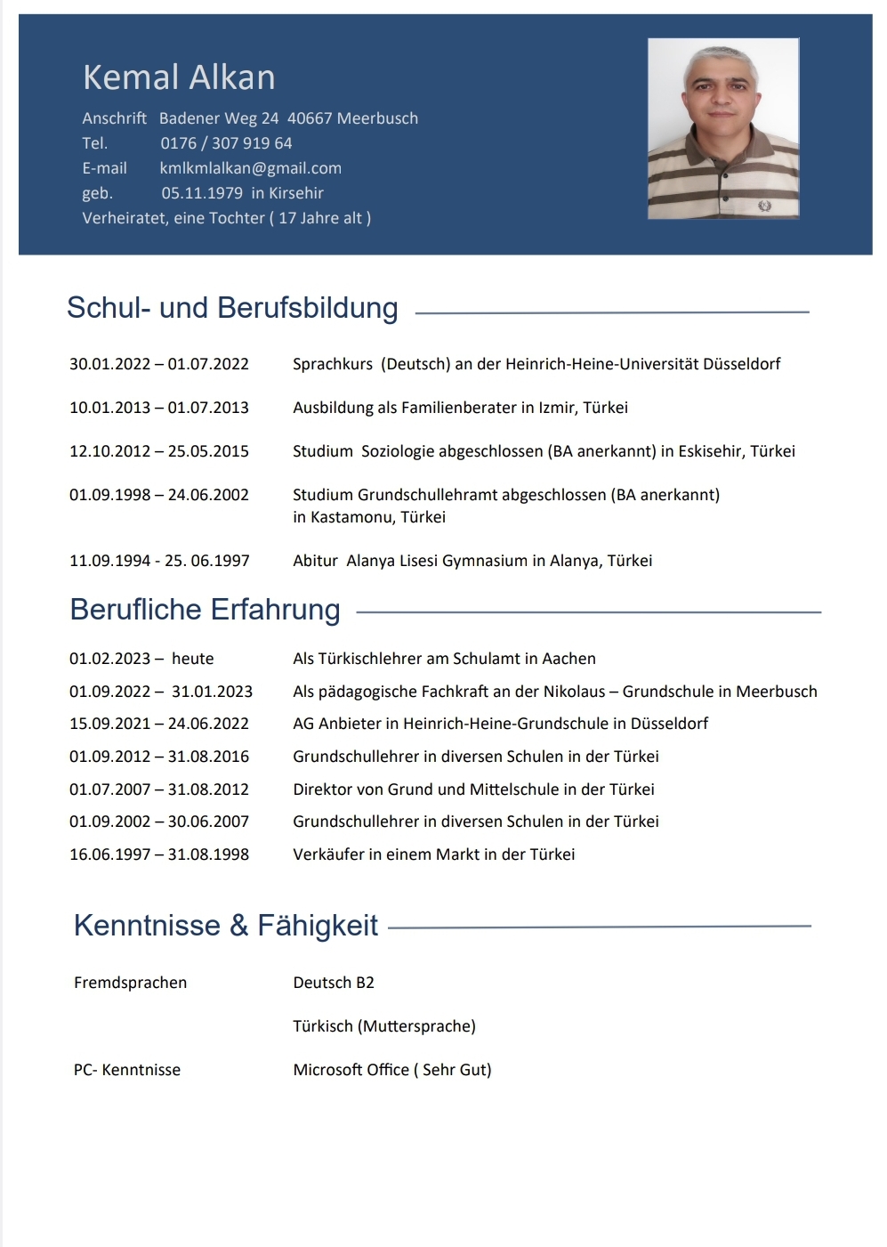 mein Name ist Kemal, und ich bin seit 17 Jahren als Lehrerin tätig. Davon habe ich 15 Jahre in der Türkei und die letzten 2 Jahre hier in Deutschland gearbeitet. Derzeit bin ich als Türkischlehrerin an einer Schule in Deutschland tätig.