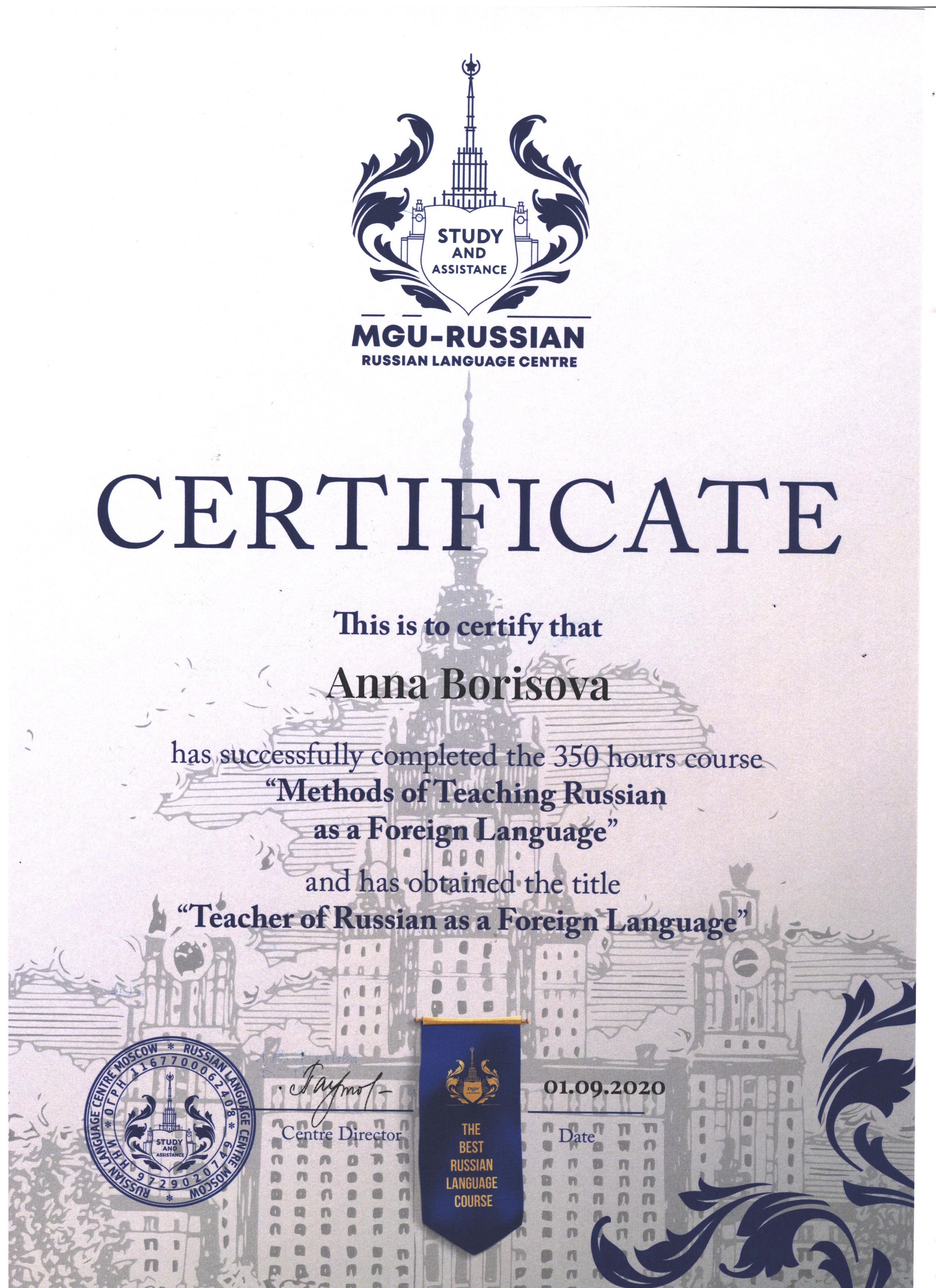 I am a certified teacher of Russian Language as a Foreign Language (Russian Language Centre of Moscow State University) with 5 years of experience as a Russian teacher and I love teaching my language. I am from Moscow and I've been living in Spain for 10 years. I speak English and Spanish and have students with different levels and needs from all over the world.