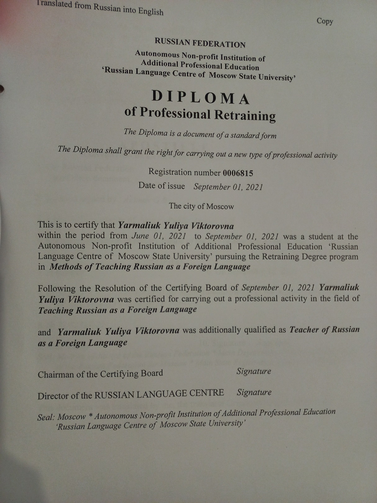 Soy hablante nativa y profesora de ruso licenciada por la Universidad Estatal de Moscú.