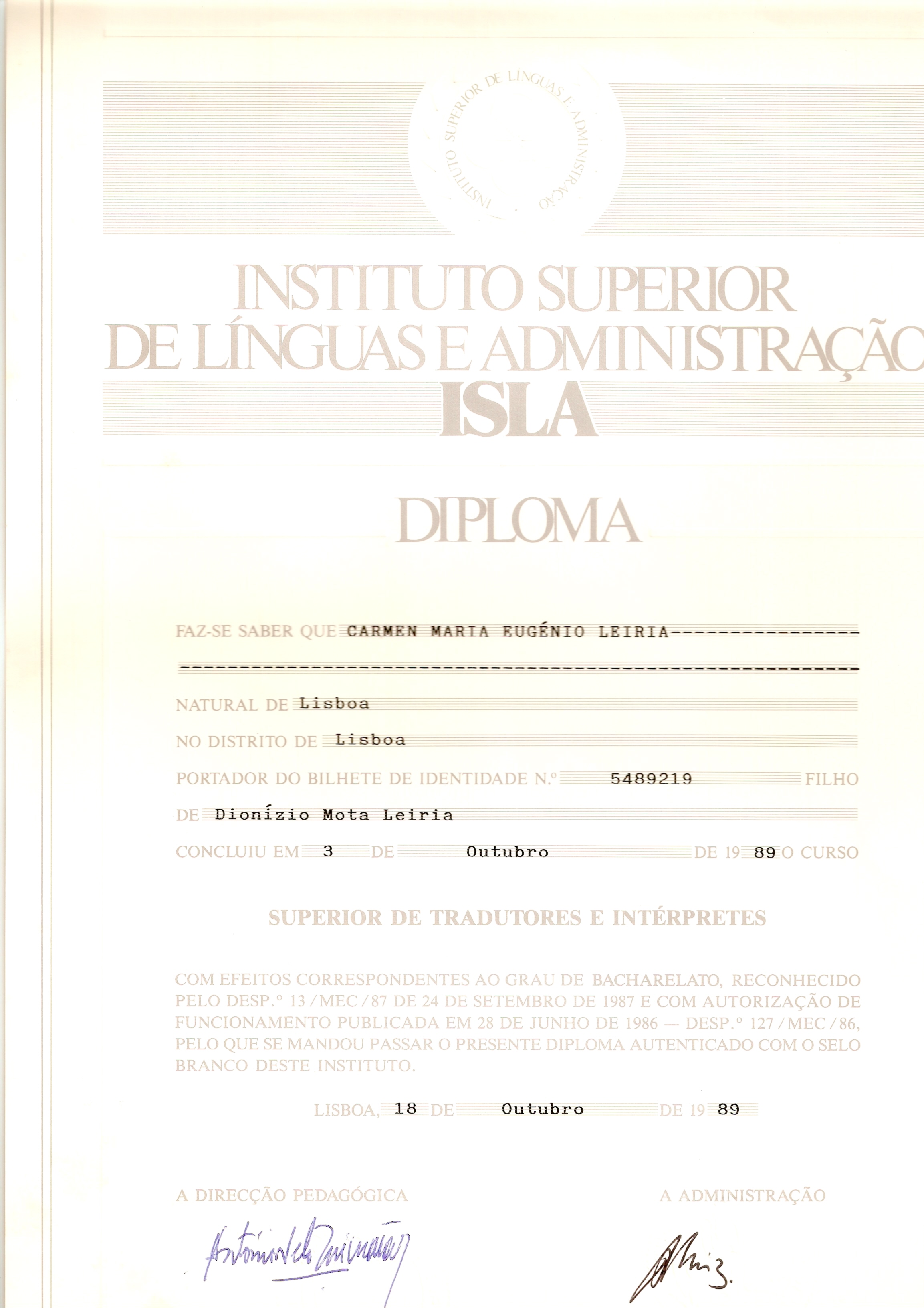 Je suis diplomée en Traduction par une univérsité portugaise et je suis professeur d'anglais depuis quelques années.