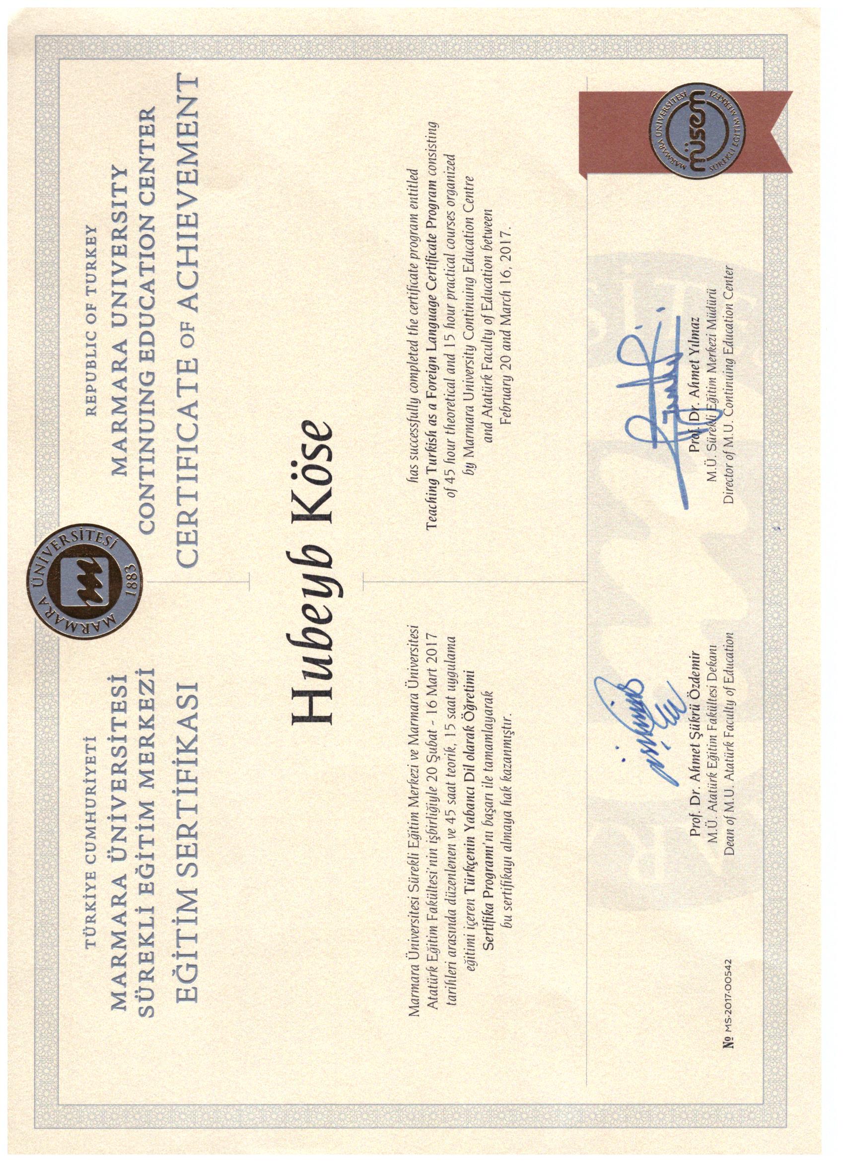 Saluti, mi chiamo Hubeyb KÖSE. Ho passato 10 anni della mia infanzia in Russia, sono andato alla scuola elementare di educazione nazionale russa. Ho studiato il liceo e l'università in Turchia. Sono un laureato di Bant Abant İzzet Baysal University Turkish Language Teaching (2013). Ho 28 anni. Ho un certificato per insegnare il turco agli stranieri della Marmara University. Parlo russo intermedio, francese e inglese. Sto ancora insegnando il turco a bambini stranieri e adulti stranieri in una scuola privata russa a Istanbul.
