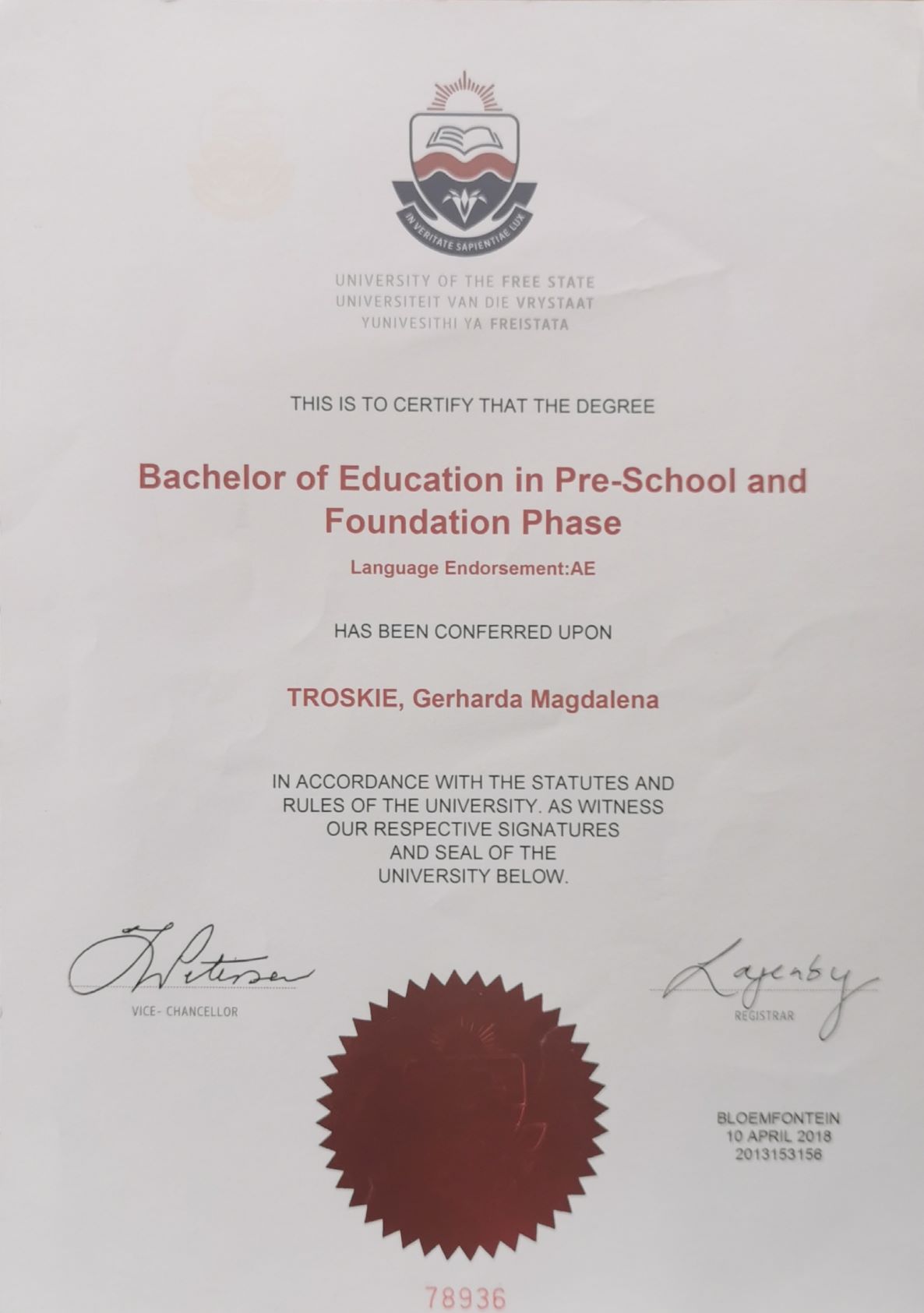 Magda Troskie, qualified teacher with 7 years of teaching experience