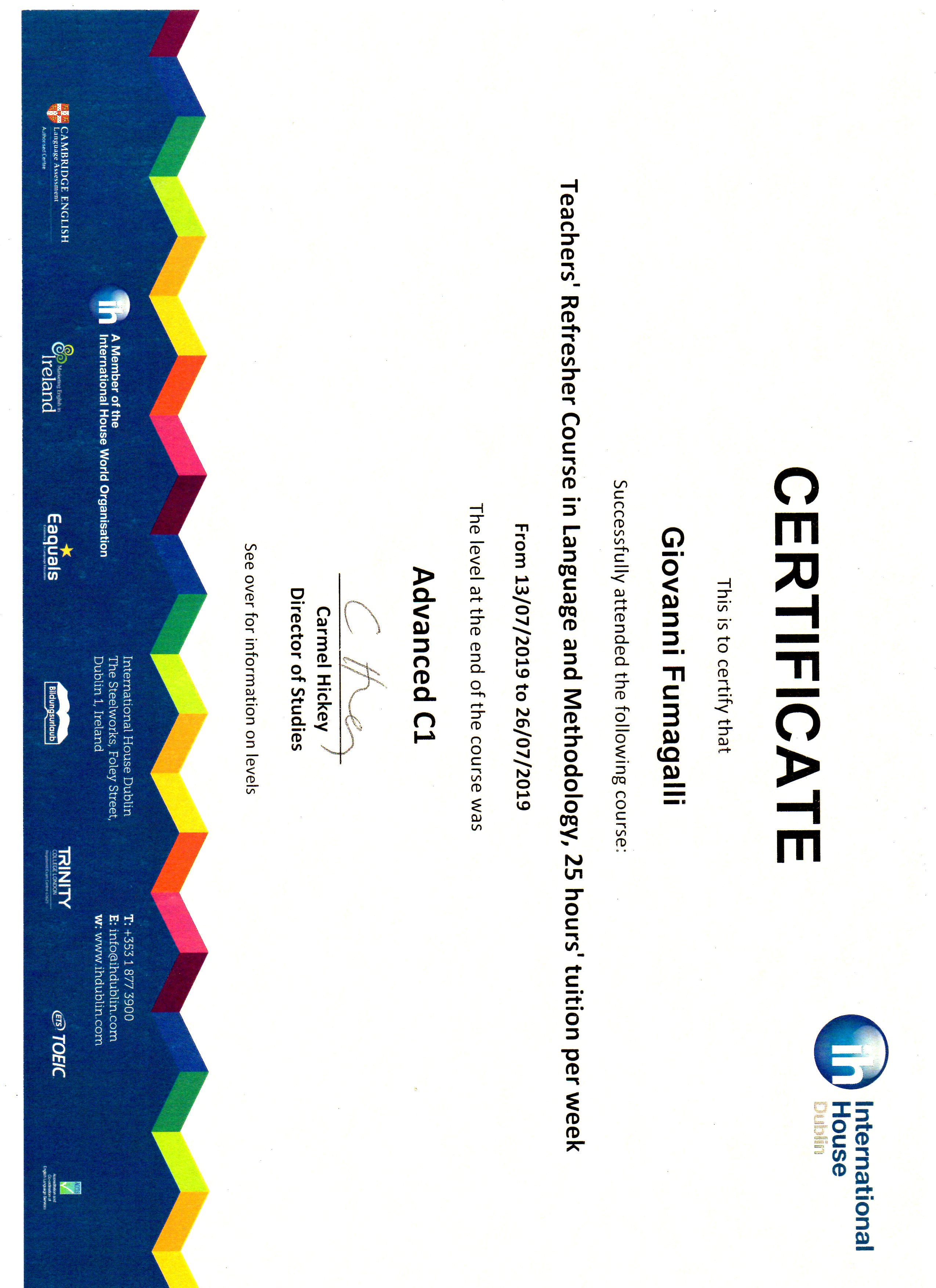 Cetificati d'insegnamento: