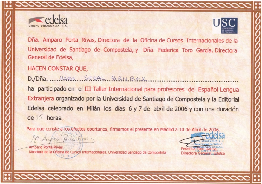 Dal 2004 lavoro come insegnante di spagnolo in scuole pubbliche con bambini dai 5 ai 16 anni, in scuole di lingue internazionali, università di Biella (Italia), Enti culturali e come formatrice di spagnolo per settori aziendali sia offline e online.