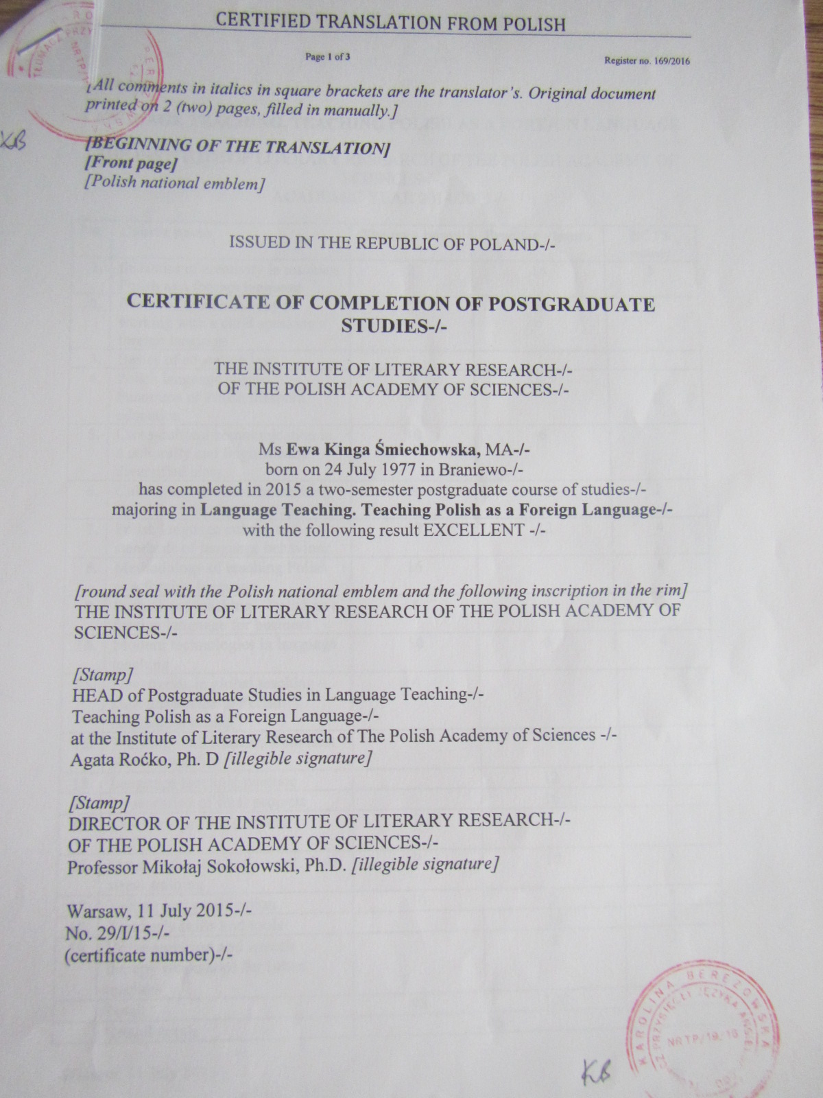 exams in Polish. Teaching grammar, literature,