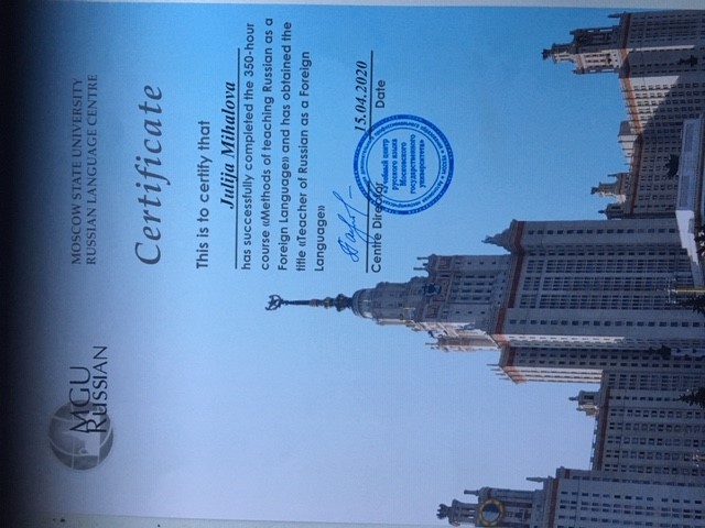 Hallo, mijn naam is Julija. Ik ben een beëdigde vertaalster Nederlands-Russisch en gecertificeerde docent Russisch als vreemde taal, met 10 jaar ervaring van lesgeven.
