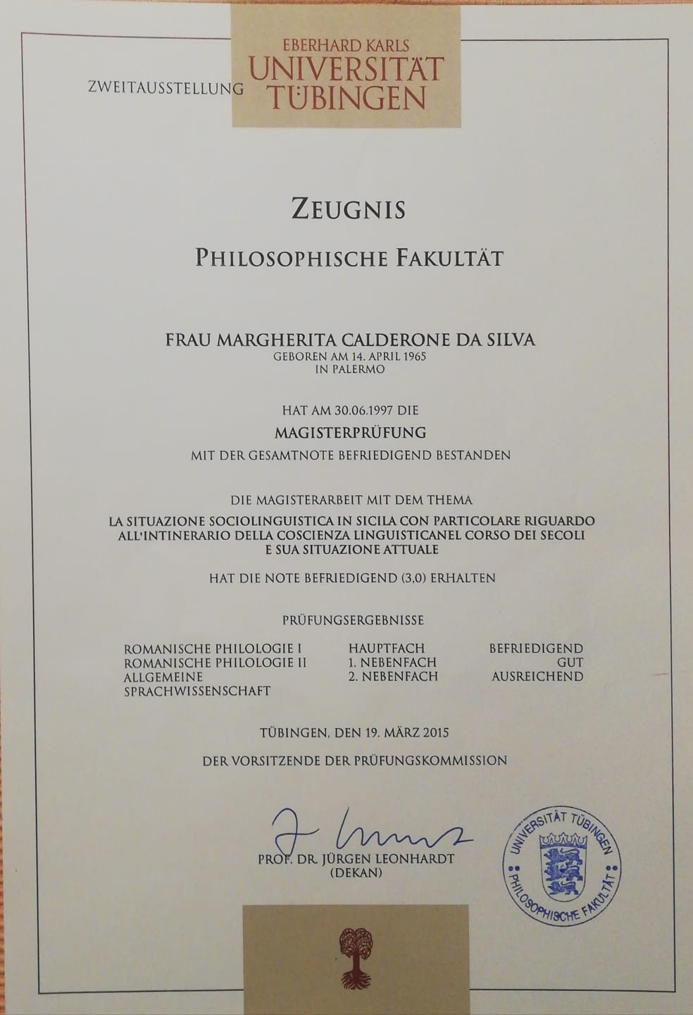 i gradueded at Uni Tübingen/Germany allgemein Sprachwissenschaft und Romanistik and lived there 13 years.