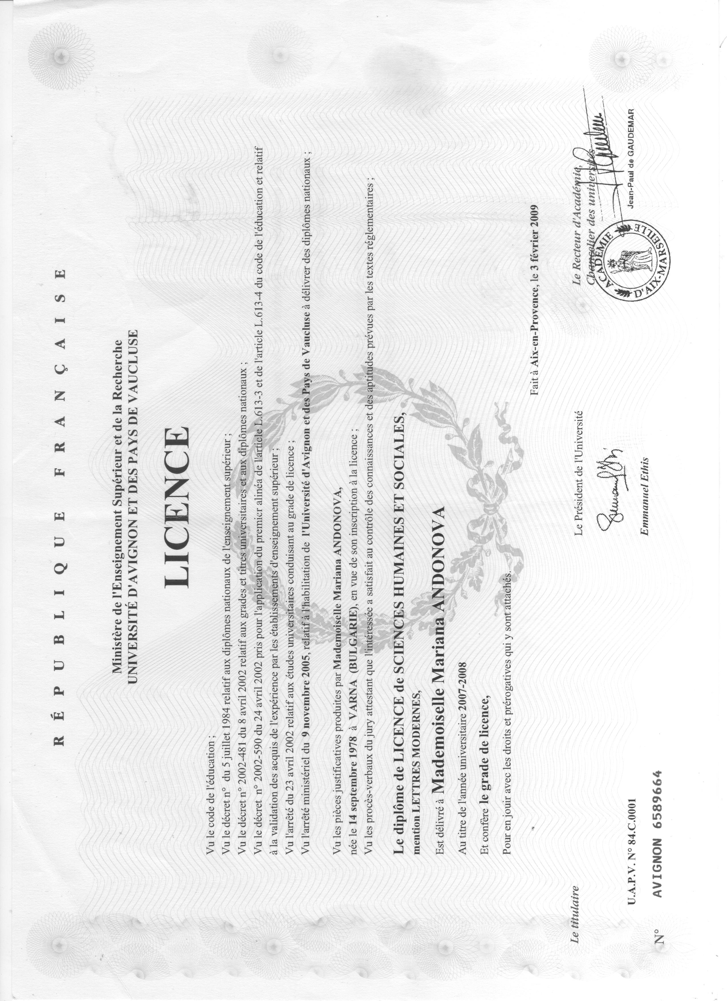 Université d'Avignon,france ,Université bulgare ,Bulgarie