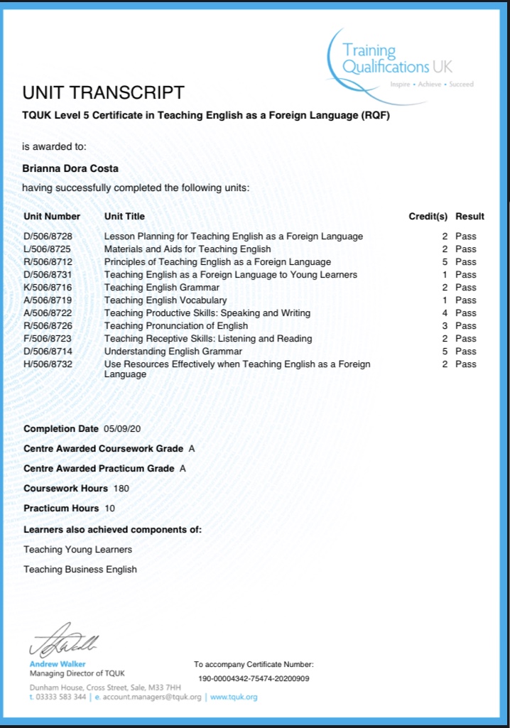 Teaching certificates:
