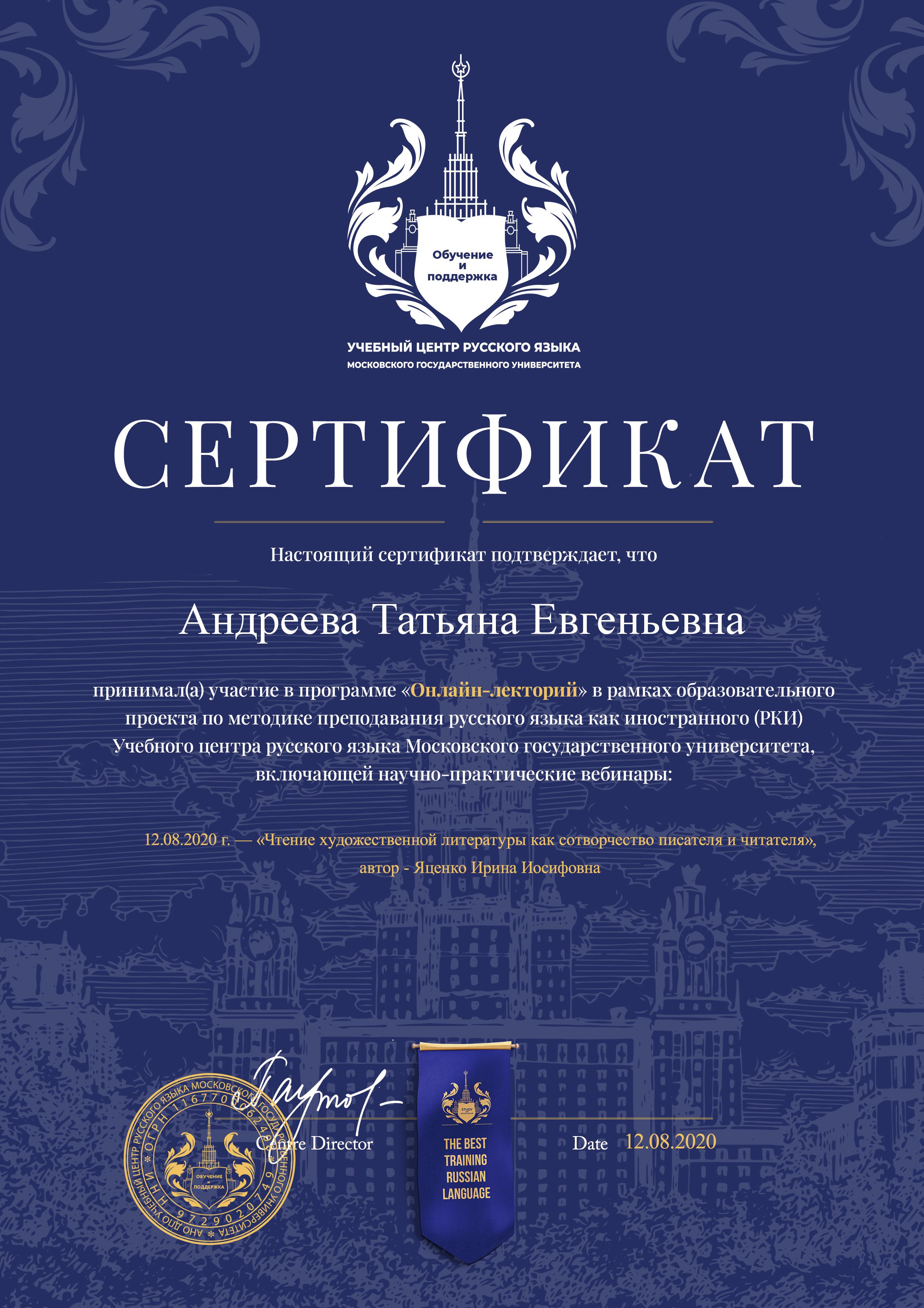 I have been teaching for 19 years. I am a certified teacher of Russian (both native and foreign) and literature and a native speaker.