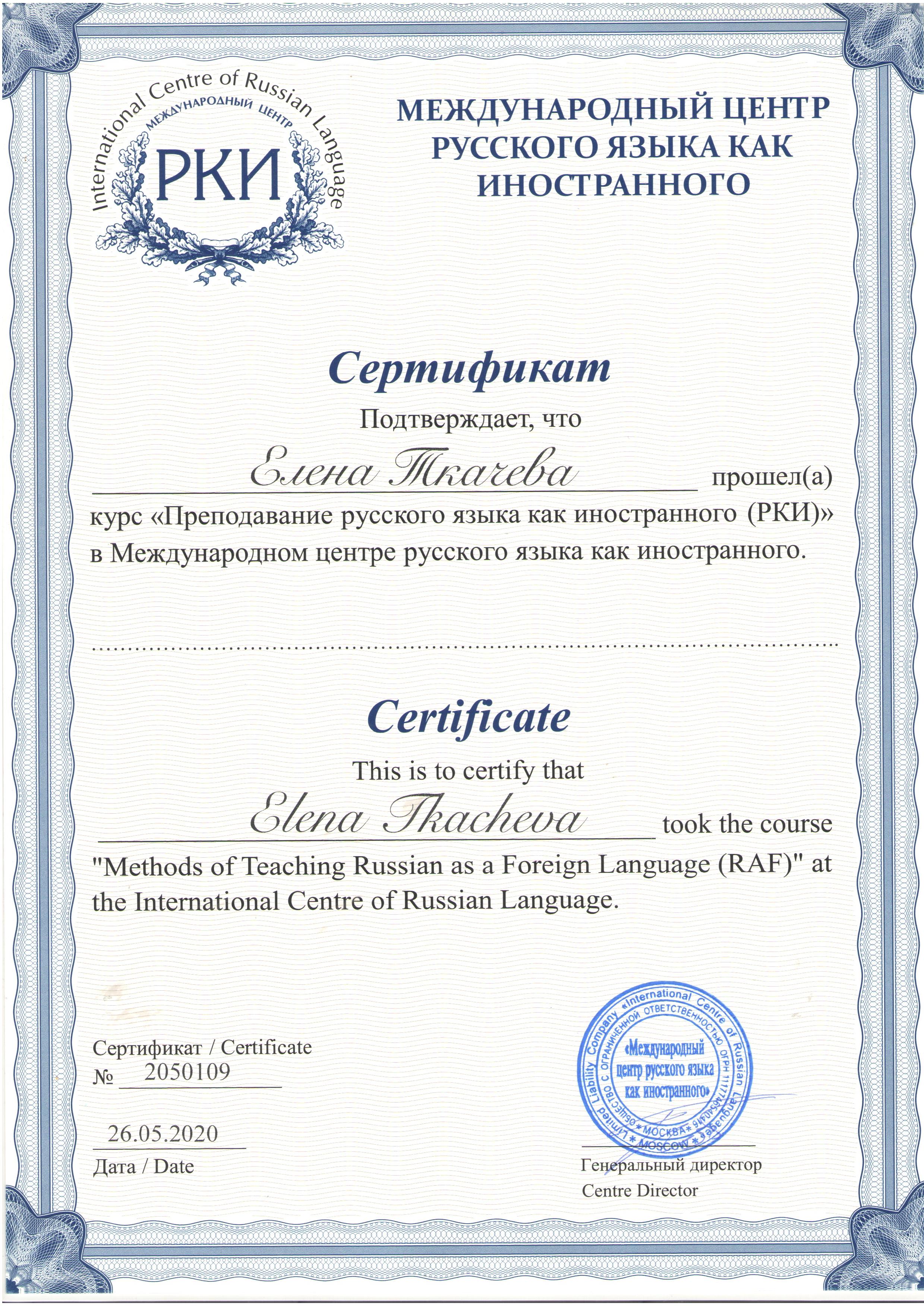 A certified teacher of Russian as a Foreign Language with more than 4 years of experience.