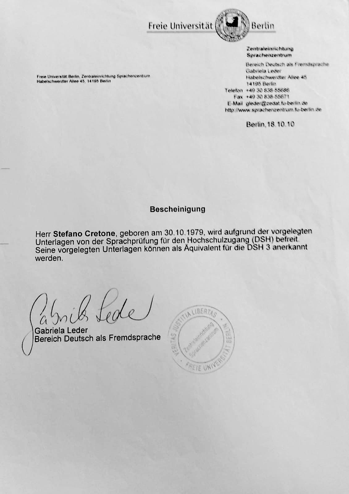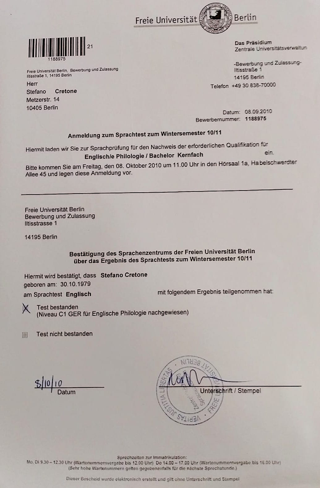 I have a Master´s Degree in COMPULSORY SECONDARY EDUCATION AND HIGH SCHOOL, VOCATIONAL TRAINING AND LANGUAGE EDUCATION (University of Valencia) and a Degree in Foreign Languages and Literature (University of Padua), officially homologated by the Ministry of Education in Madrid and the Ministry of Education in Berlin. The directors of the different Institutions, where I have been working have given me several positive recommendation letters, which I can show you whenever you want. I am empathetic, outgoing and enthusiastic.