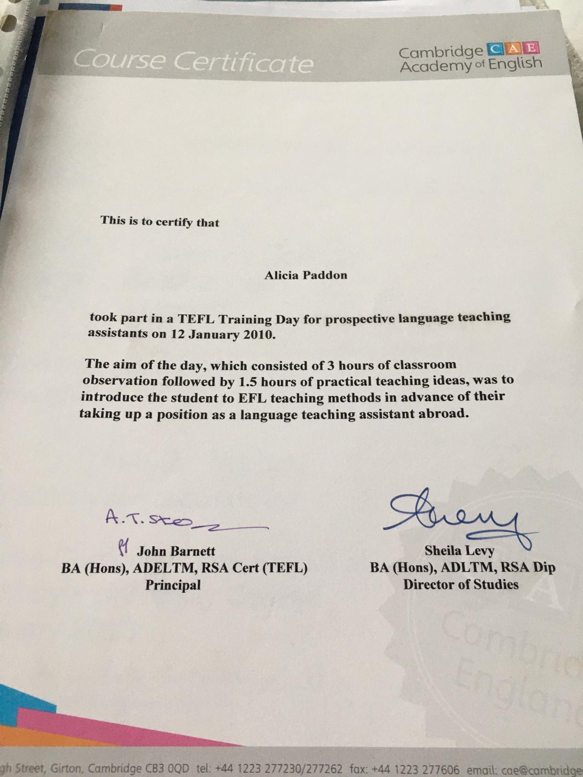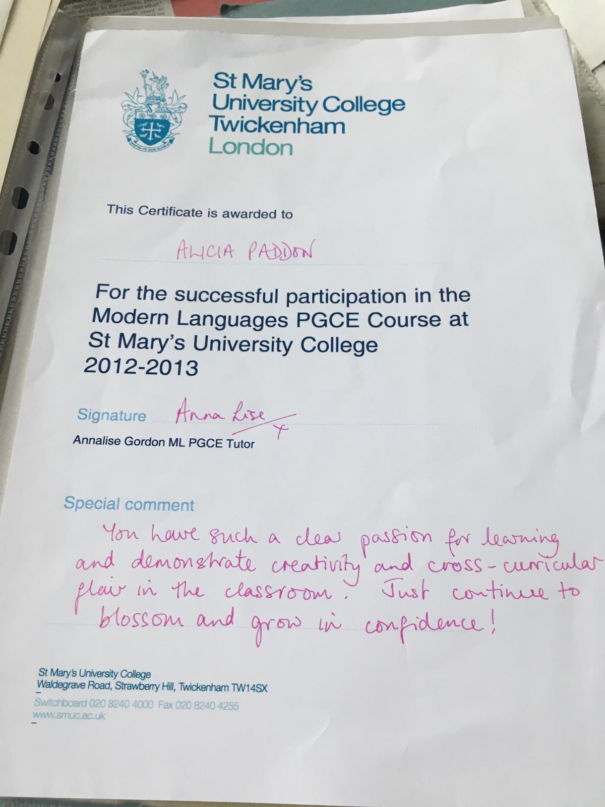 Teaching certificates: