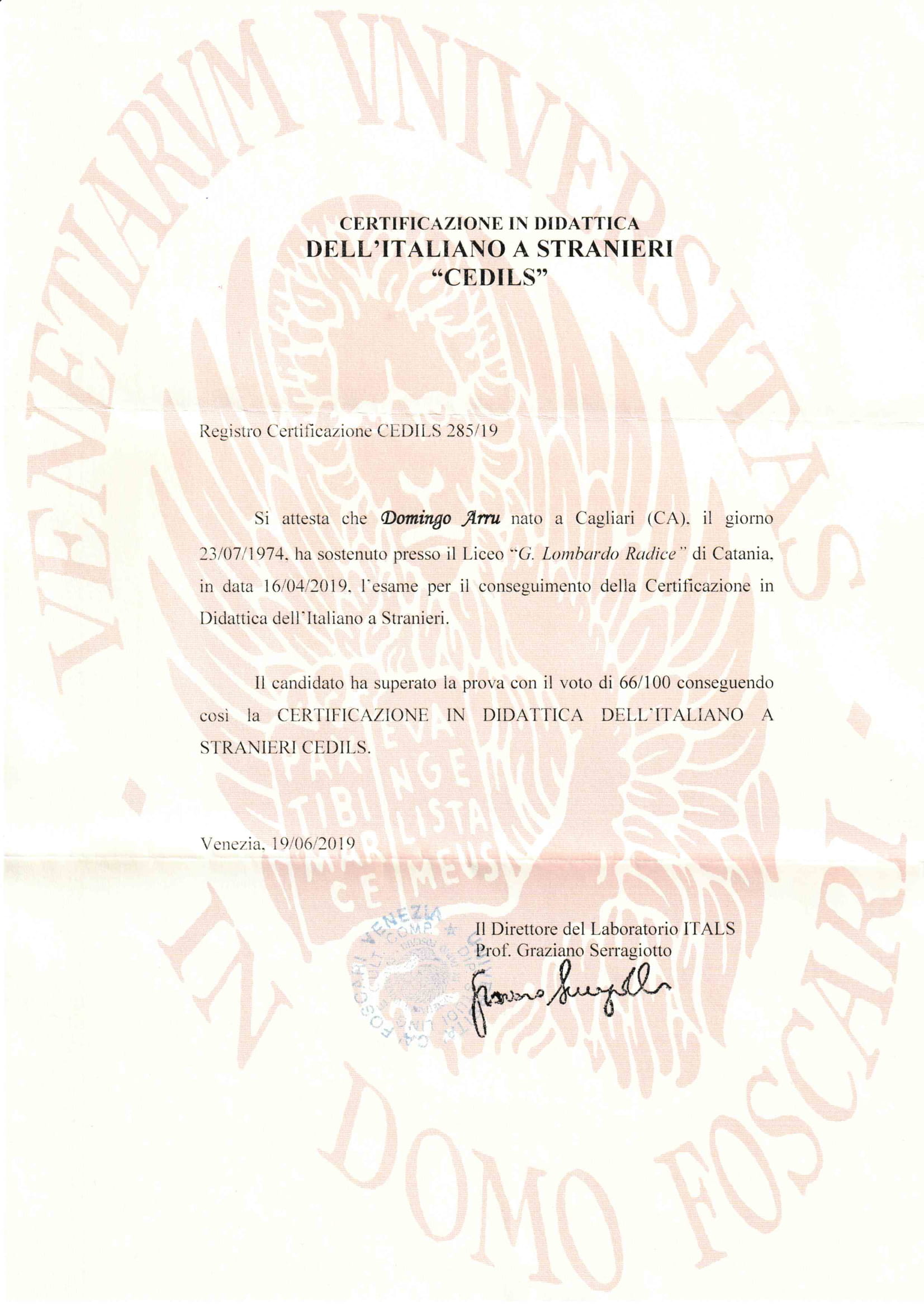 After classical studies, I graduated in Italian language and literature. Then I obtained the Cedils certificate as a teacher of Italian for foreigners.