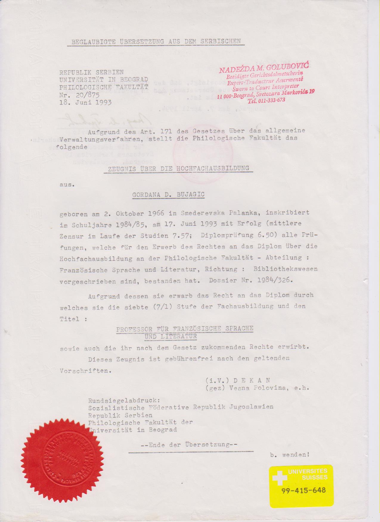 Enseignante franco-serbe