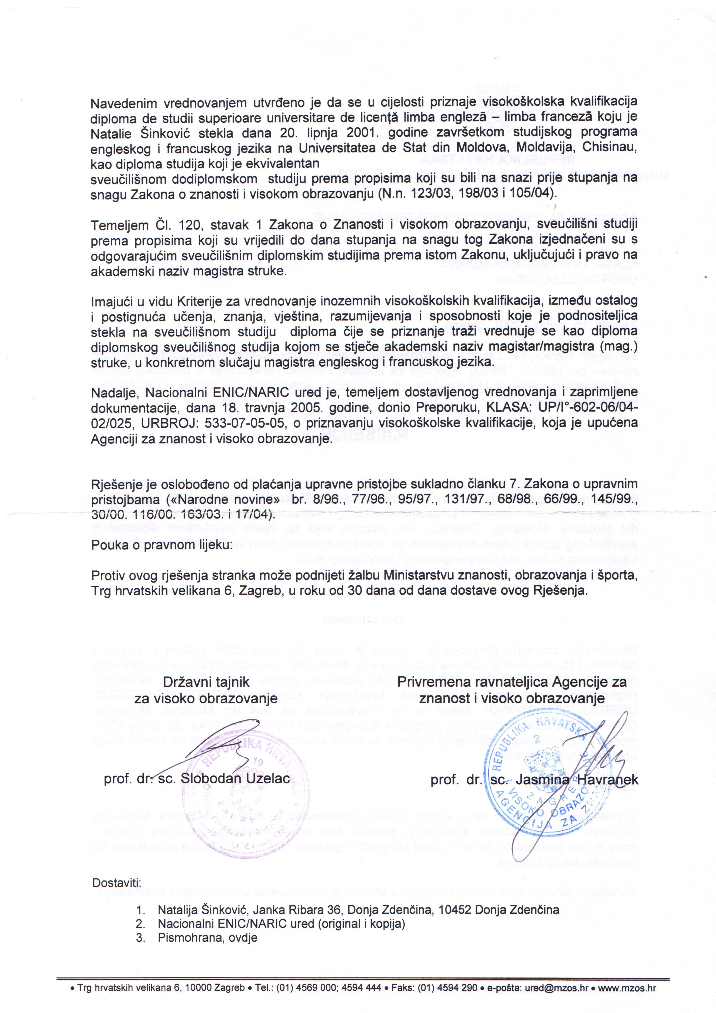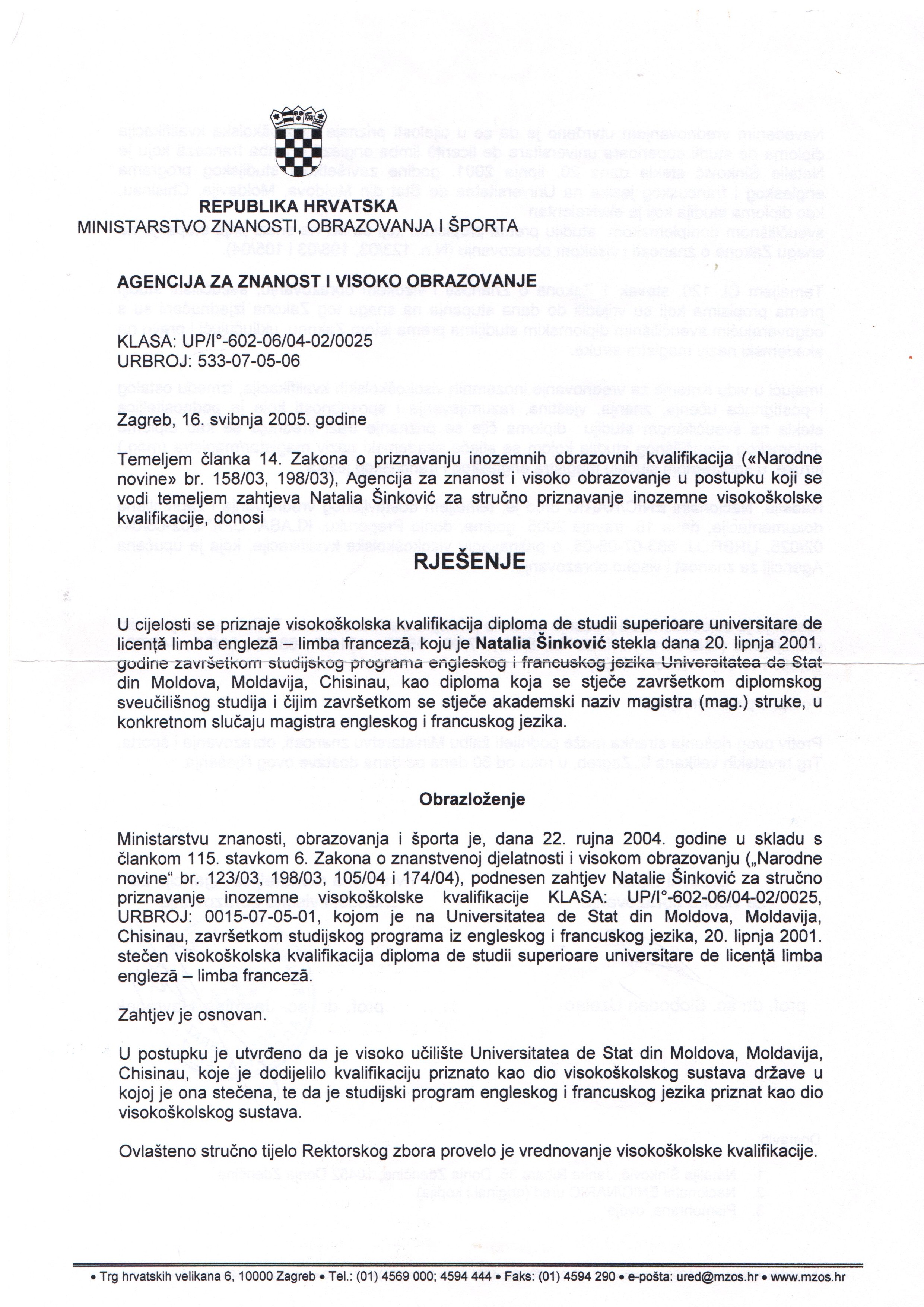 My name is Natalia Sinkovic. I graduated from Moldova State University, I am an English and French language teacher, but I also speak Romanian and Croatian. I've been teaching English and French for almost 12 years. Classes are focused on students. They develop their speaking, listening, reading and writing skills. I use a lot internet resources. I challenge students to speak a lot during lessons.
