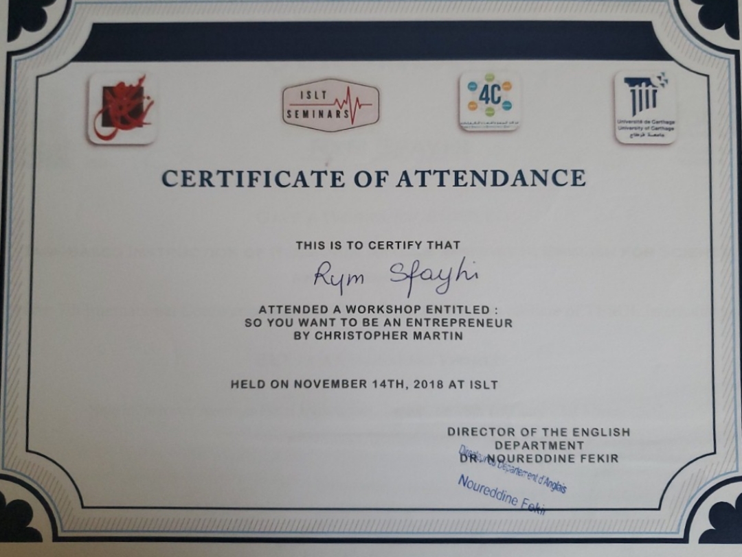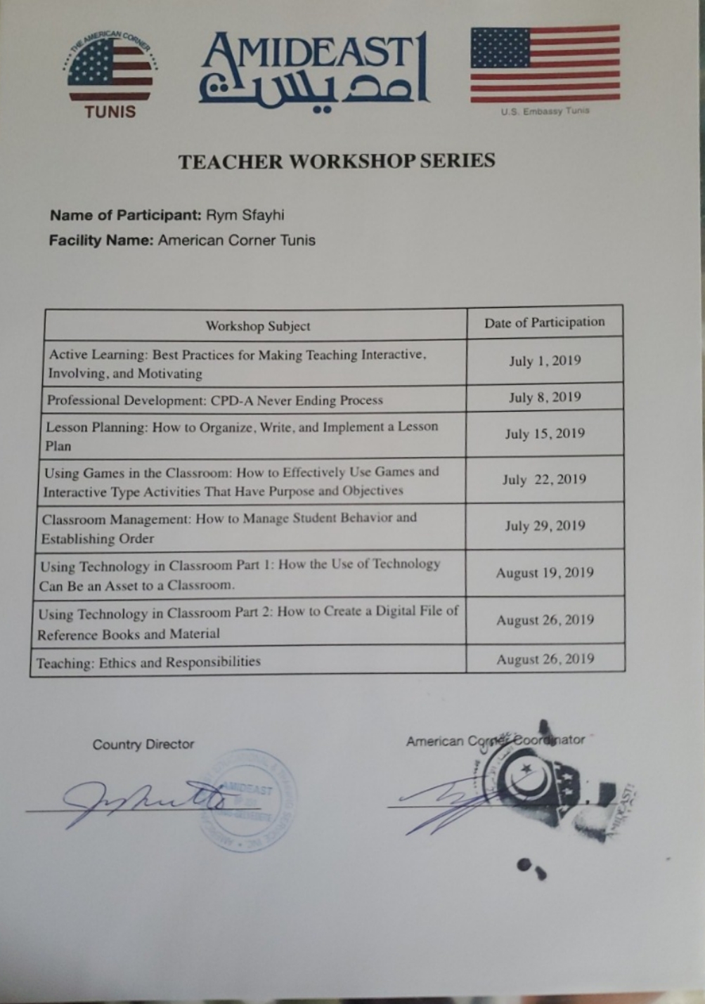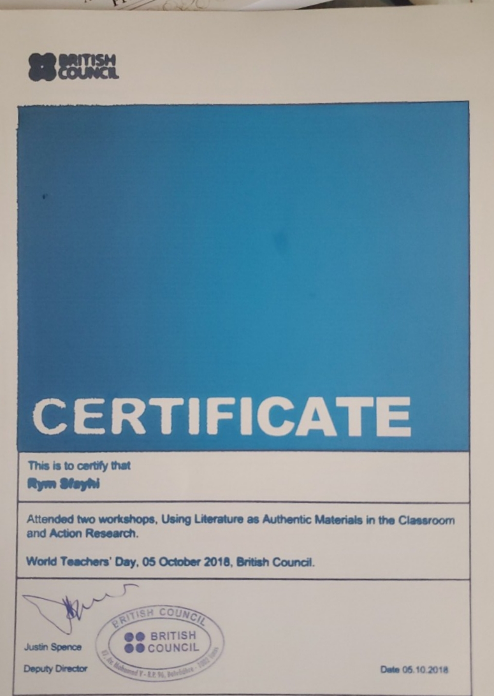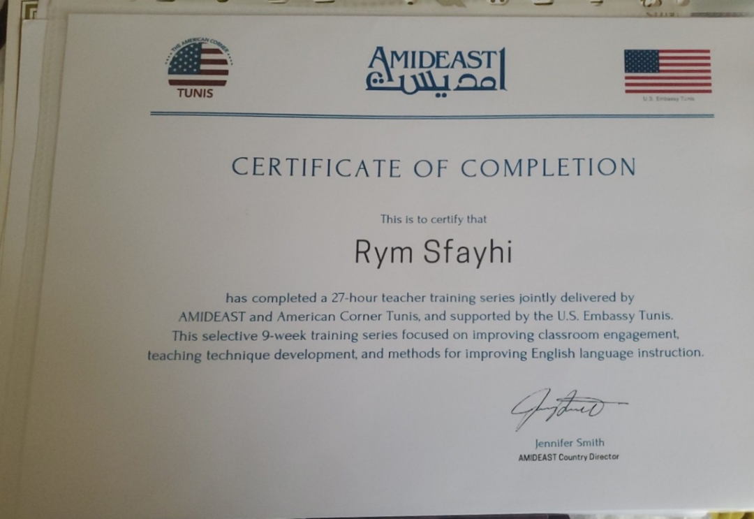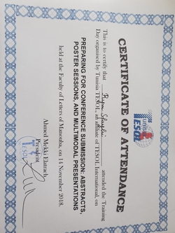 I attended many workshops with Amideast Tunisia and British council Tunisia. I am also a TESOL member and I do really want to engage in presentations infront of audience when being in a conference. I usually present motivating theme that are related to language learning.
