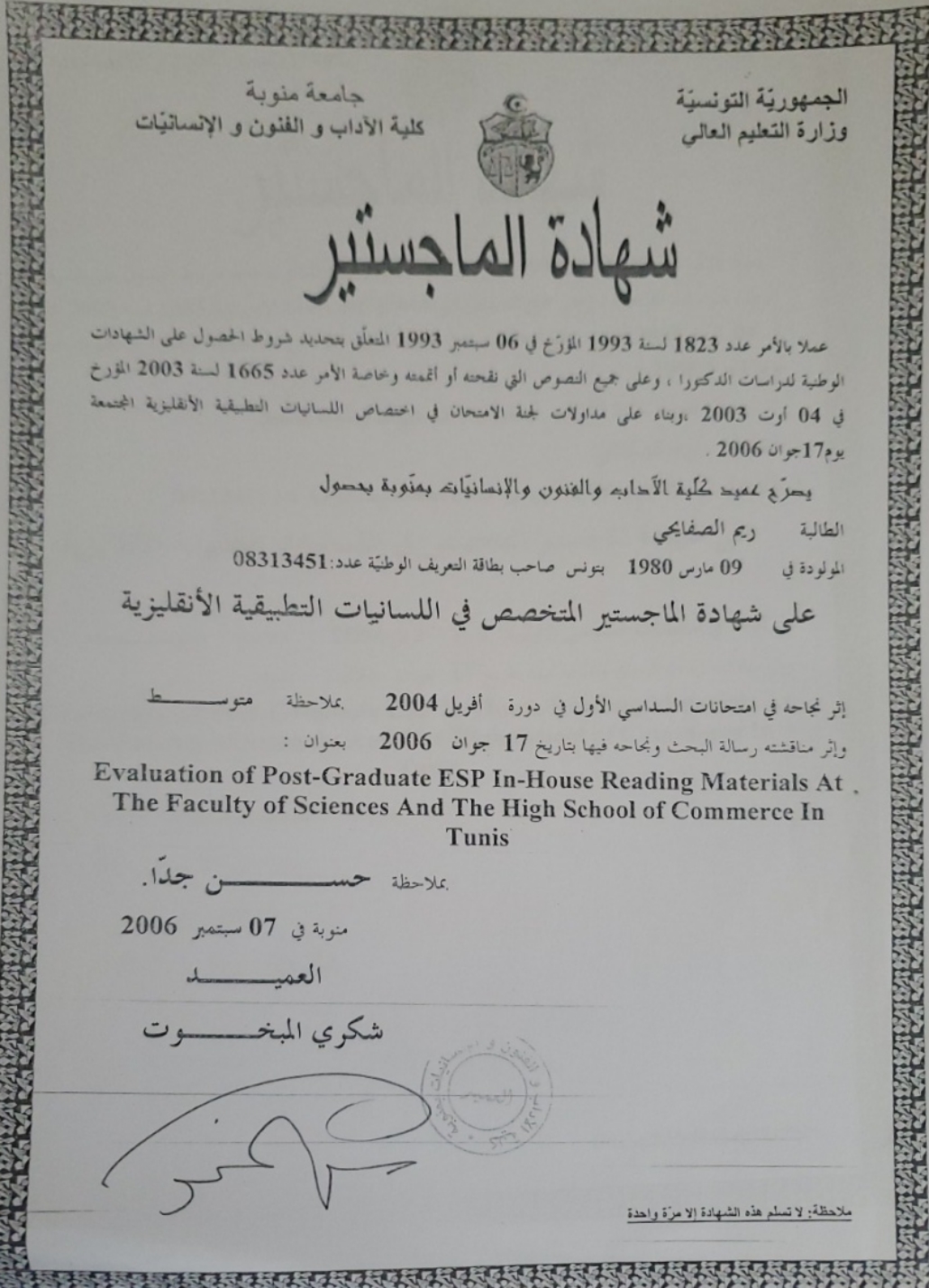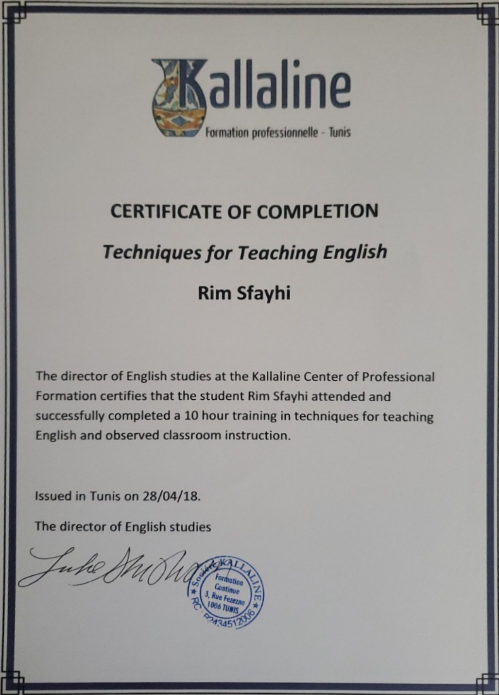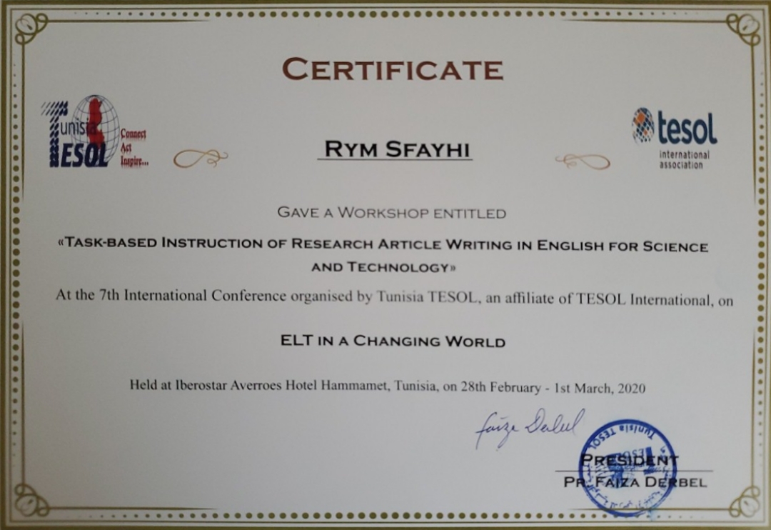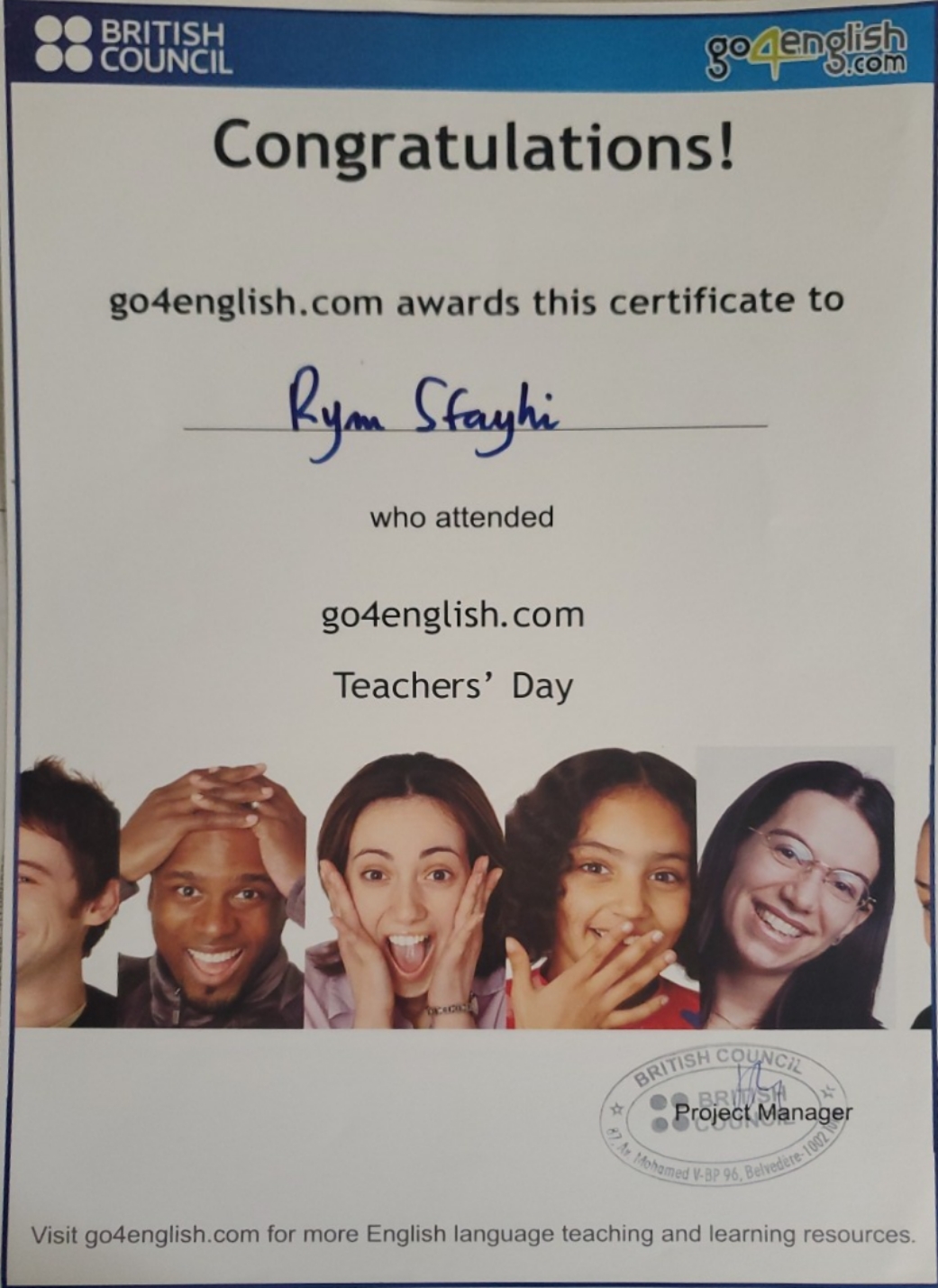I started teaching English since 2006 as a secondary school teacher in Tunis. I kept teaching as a secondary teacher till 2011. Since 2011, I moved to teaching at university for science teachers.