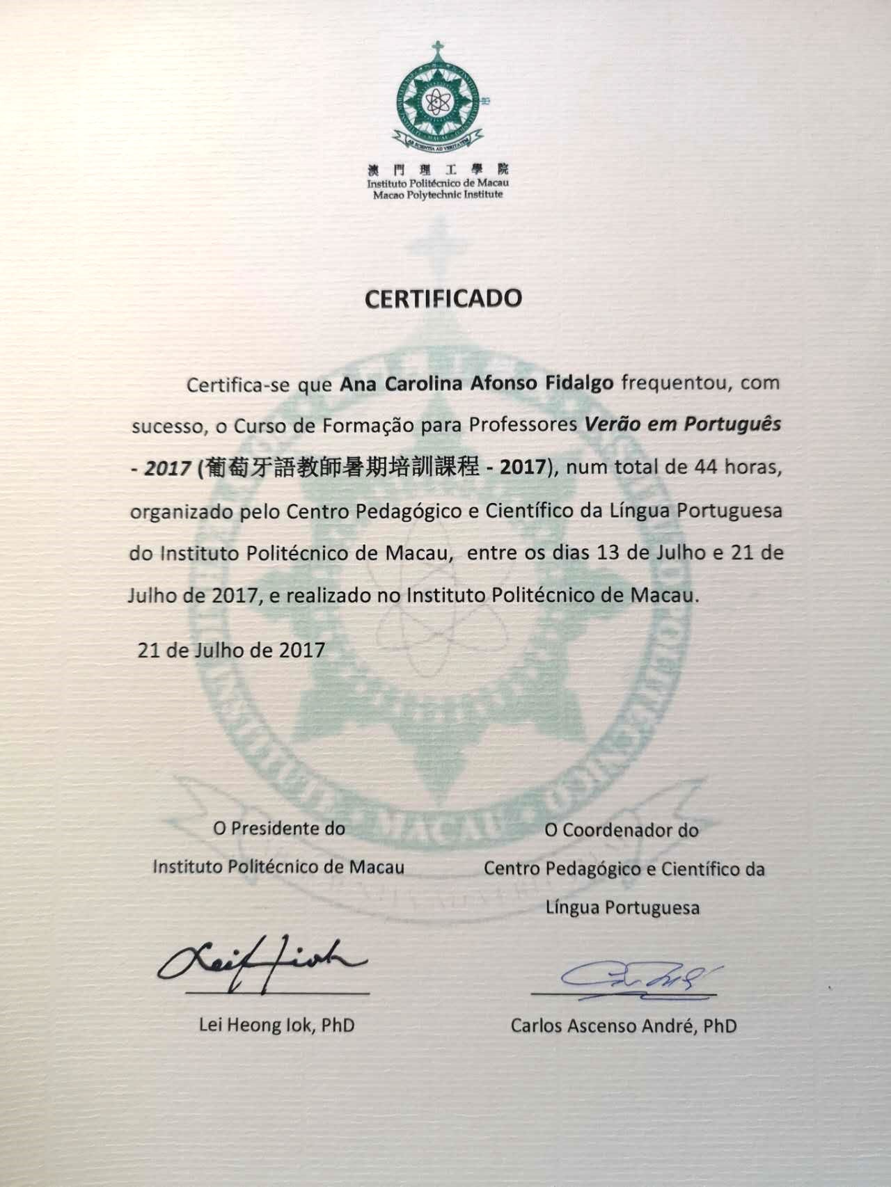 Portuguese is my mother tongue. I have a Master's Degree in Literature from the University of Glasgow and a Bachelor's Degree in Modern Languages from the University of Coimbra. I was a Portuguese lecturer at two Chinese universities (Harbin Normal University and Beijing Sport University) for five years.