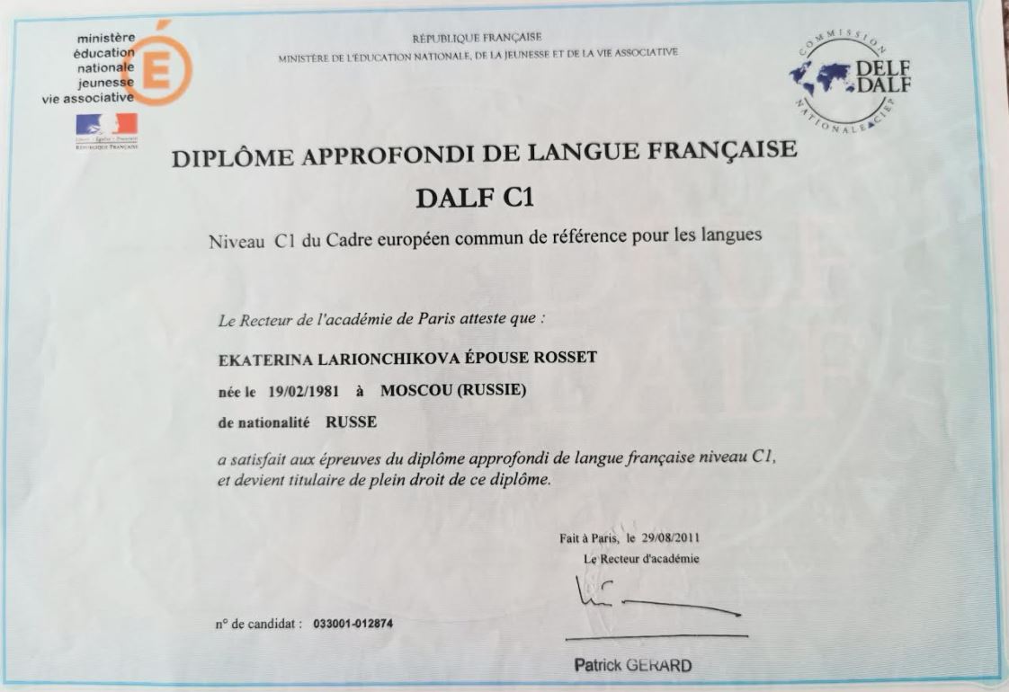 Initially trained as a lawyer, I later redirected my career towards language teaching. I hold the DALF C1 (Diplôme Approfondi de Langue Française - Advanced Diploma in French Language) obtained in 2011.