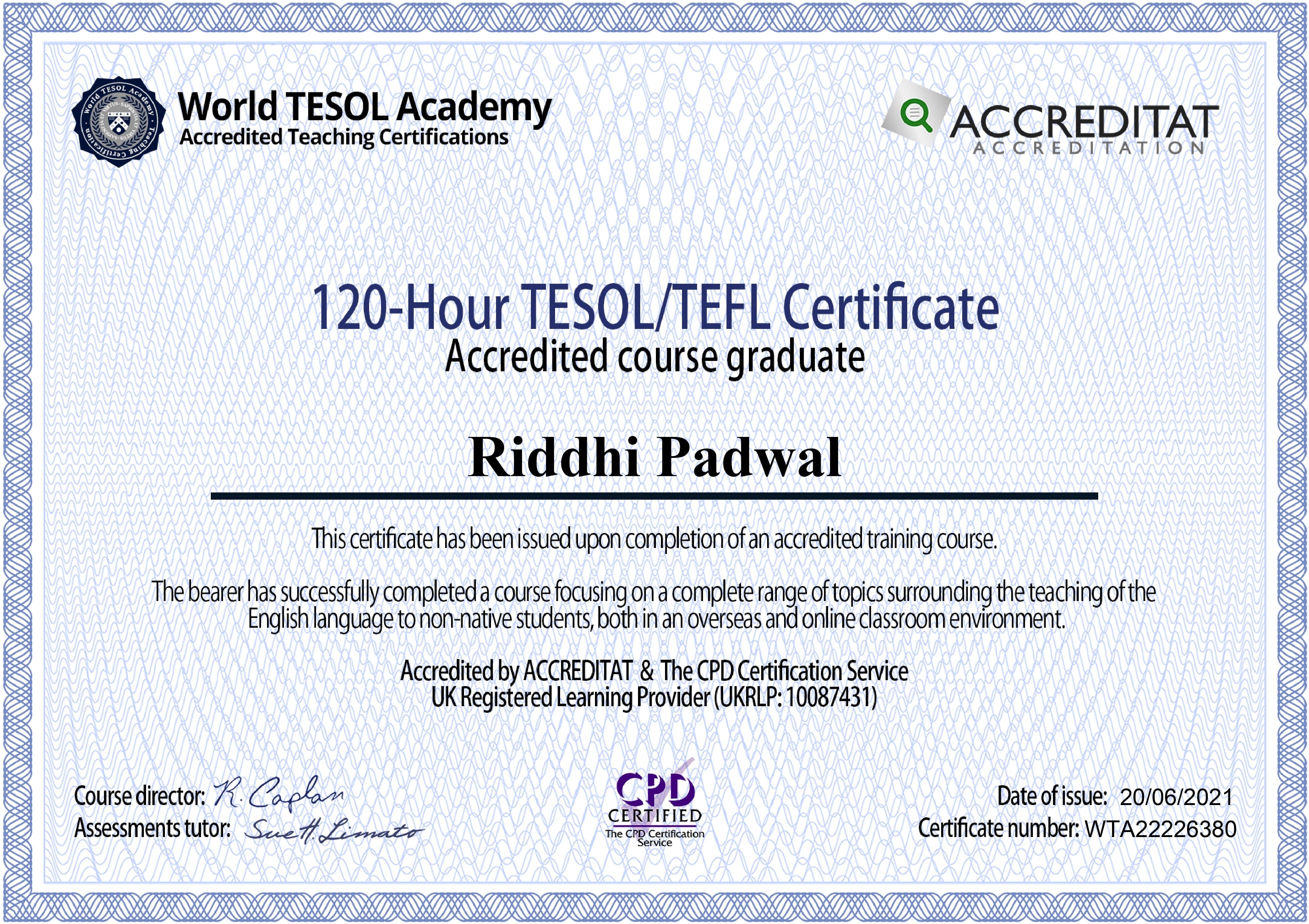 I'm Riddhi from Mumbai, India. I have been teaching English, Hindi and Turkish for over 3 years and have worked with students of different age groups across the world. Teaching is something that I am extremely passionate about and my main objective is to make my students reach their highest potential. My lessons are educative, fun and easy. From my experience, I realized that students learn things at different paces so by developing an understanding of students' needs, I design my lessons to achieve maximum benefit for the student and make sure that they have all their doubts cleared. Please contact me if you have any questions. I'm looking forward to working with you in achieving your goals!